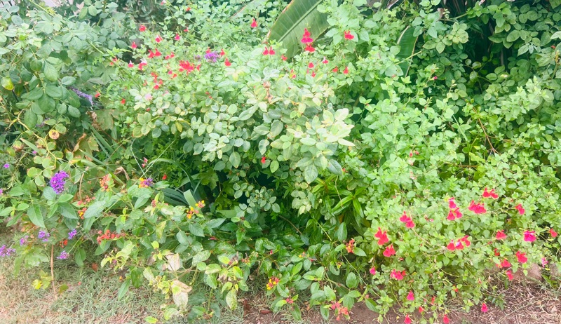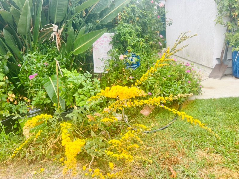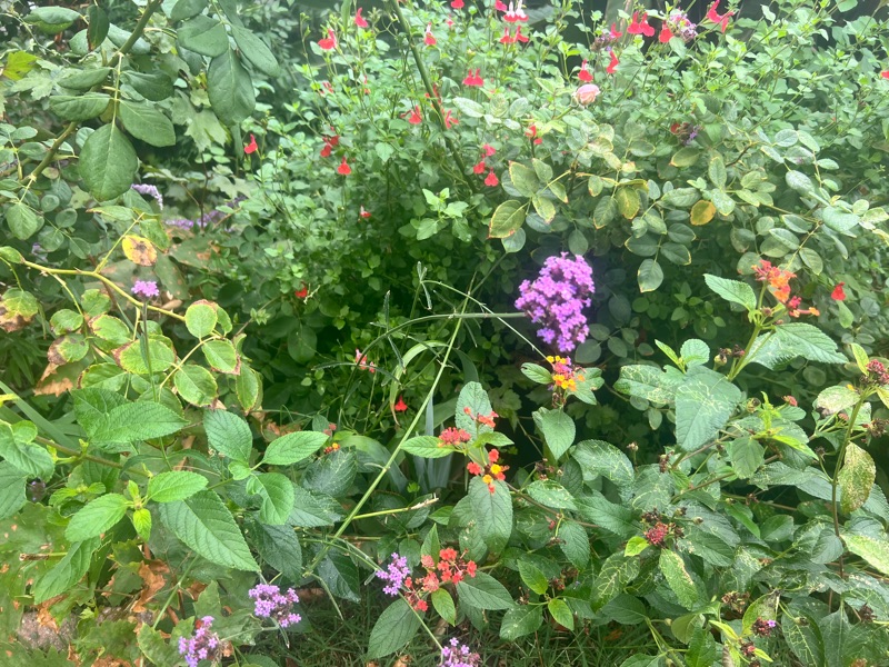 There is also something quietly yet brightly beautiful happening in my front garden. Suddenly tons of things I planted years ago have popped up to bloom at the exact same time. Bright red ‘Hot Lips’ salvia, explosive yellow goldenrod, the warm half rainbow of lantana, little frothy pink heads of Valerian, velvety purple sage spikes and the ultraviolet glow of Verbena bonariensis are suddenly blooming in incredible harmonic resplendence! You guys, IT IS SO PRETTYYYYY!