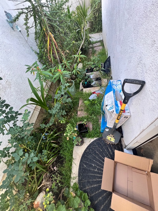 On Saturday morning, I went outside and while listening to a two hour church conference, reclaimed a horribly weedy and overgrown space by our front door. It felt so good to do it! And it was very easy to do! And now every single time I come or go, my mind is pleased with the cleanliness and order of it all. *WIN* *tiny spark of joy*